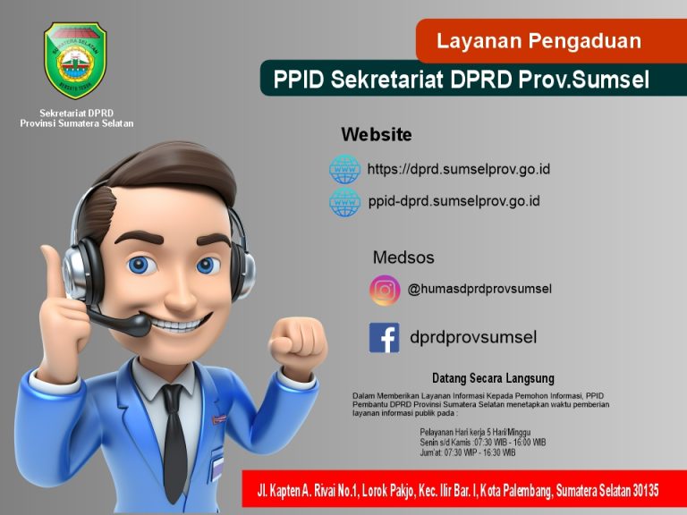 - Masyarakat dapat melakukan pengaduan melalui PPID Pembantu Sekretariat DPRD Provinsi Sumatera Selatan